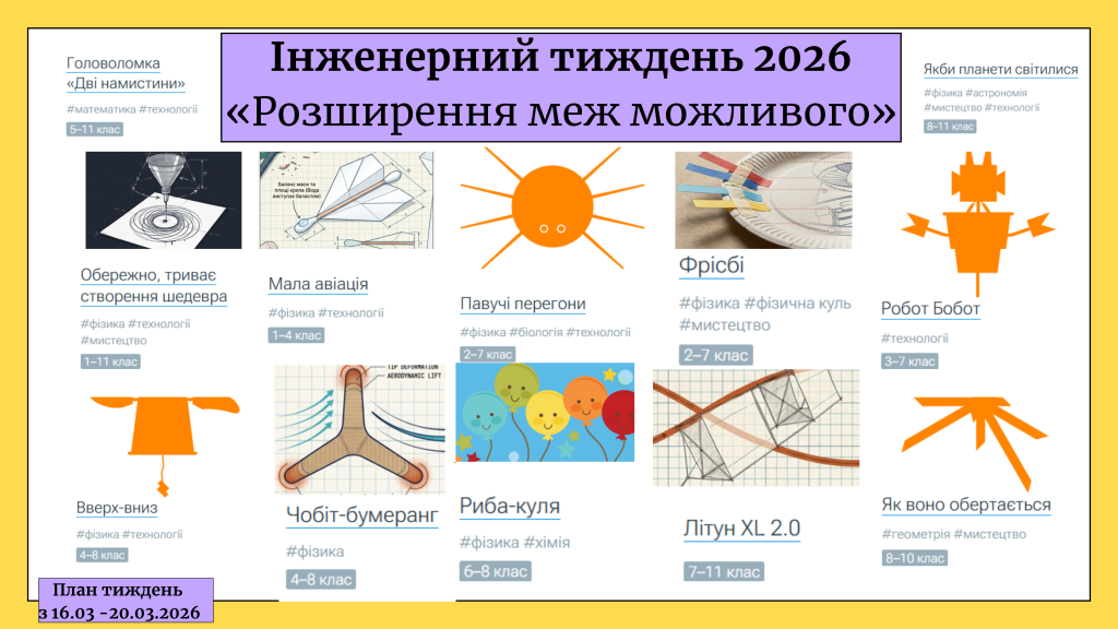 Цього року наш ліцей долучився до Інженерного тижня 2026 — події, яка відкриває дітям світ винахідництва, експериментів і цікавих відкриттів.