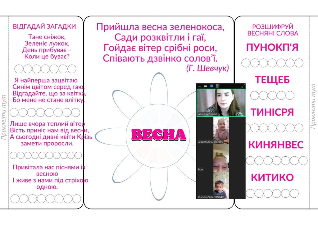 До свята діти виконували й тематичні логопедичні завдання з листівки-розгортки «Зі святом весни!»: