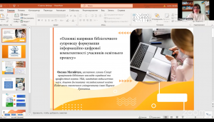 15 квітня завідувач бібліотеки нашого ліцею Валентина Рибалка взяла участь у всеукраїнському вебінарі «Формування інформаційно-цифрової компетентності учасників освітнього процесу: бібліотечний супровід».