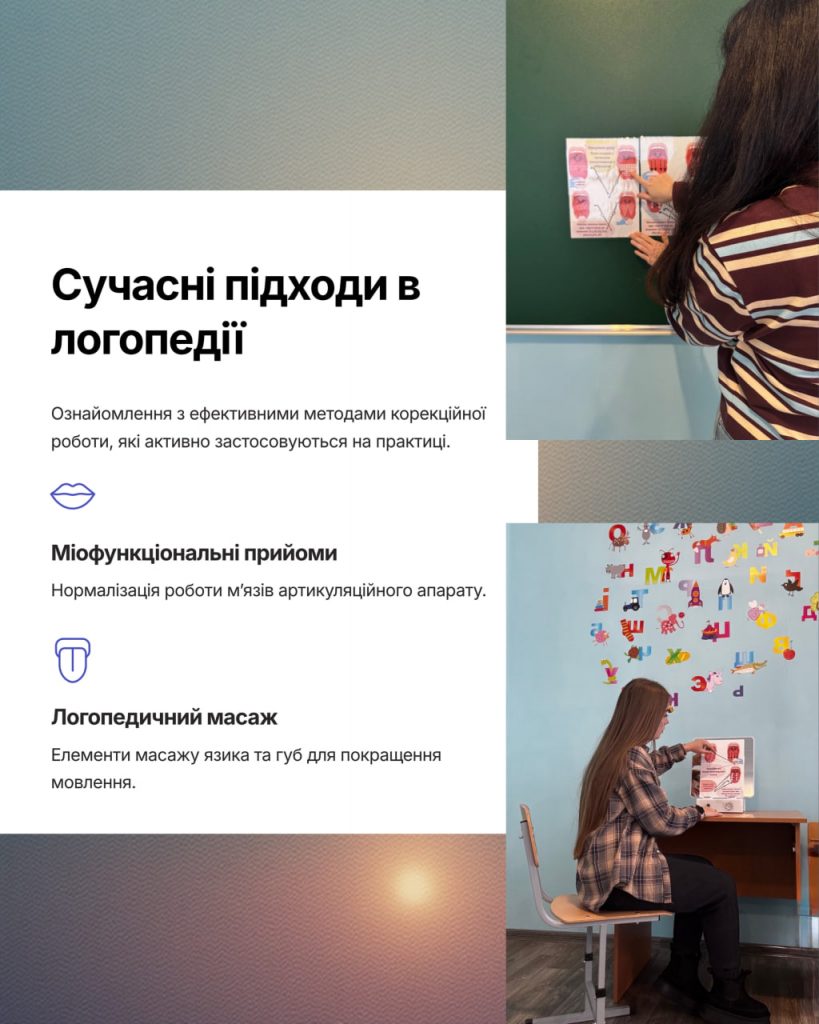 Під час заходу учасників ознайомлено з сучасними методами логопедичної корекційної роботи, які ефективно застосовуються у практиці, зокрема: