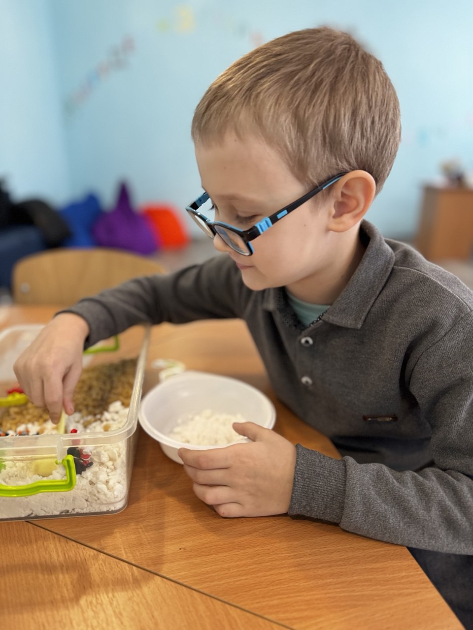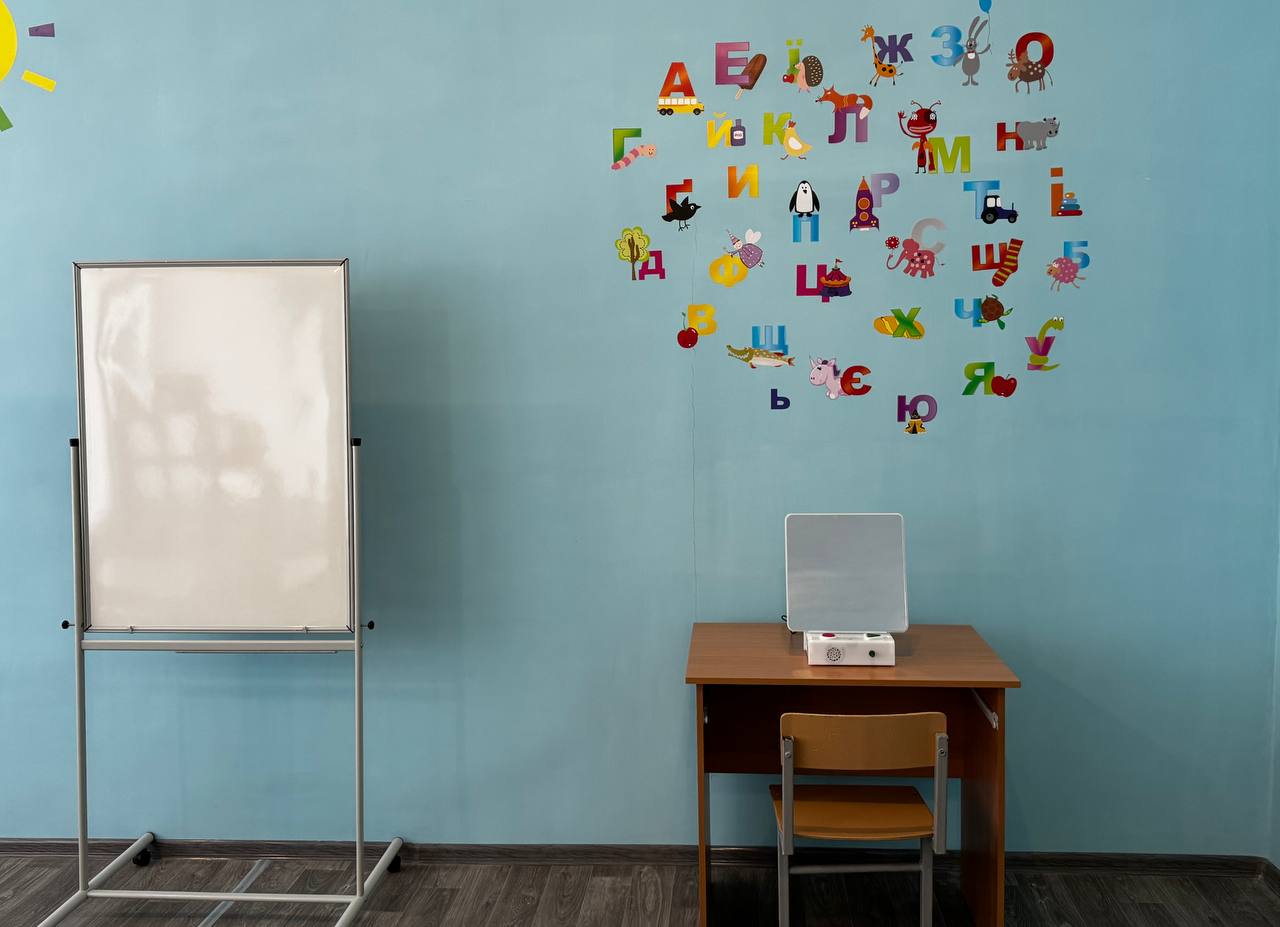 Кабінет оснащений зручними меблями та організований за принципом зонування: робоча зона, ігровий простір, зона творчості та релаксації. Такий підхід допомагає зменшити перевантаження та підтримує природний інтерес дитини до занять.